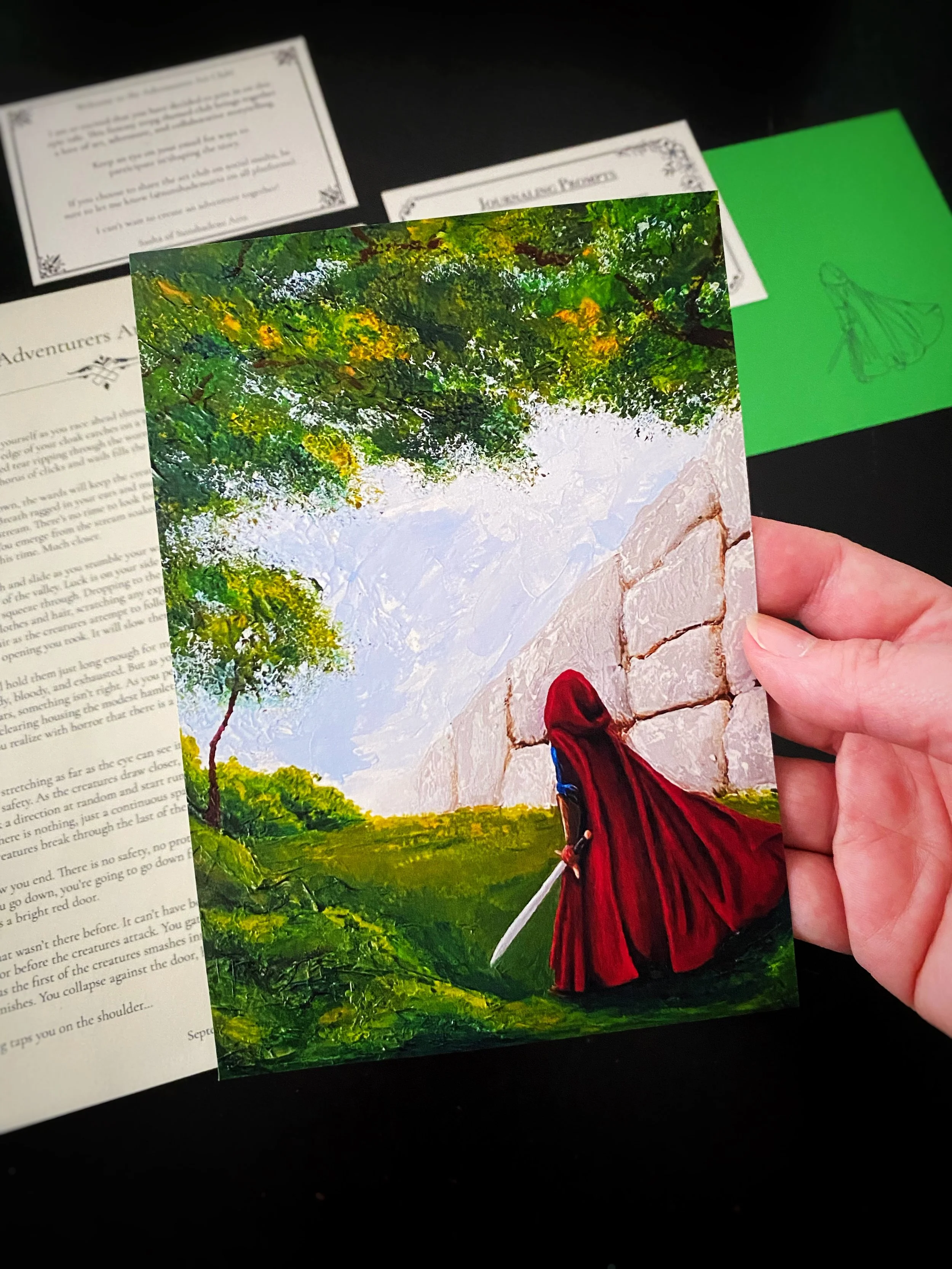 Every month, club members receive a brightly colored envelope in the mail with a thrilling novel excerpt and a numbered and hand-signed 5”x7” fine art print inspired by the story for just $8 per month.